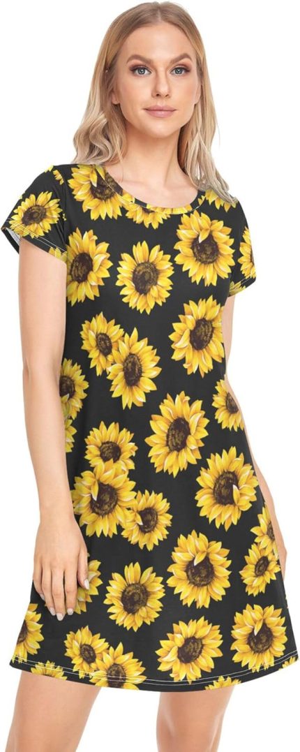 Fisyme Womens Nightgown Short Sleeve Sleep Shirt Night Pajama Dress Soft Comfy Sleepshirt Sleepwear