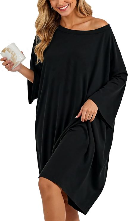 HONGTEYA Plus Size Nightgowns for Women Oversized Sleep Tshirts Dress Short Sleeves Sleepwear With Pocket Fit S-5XL