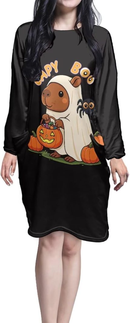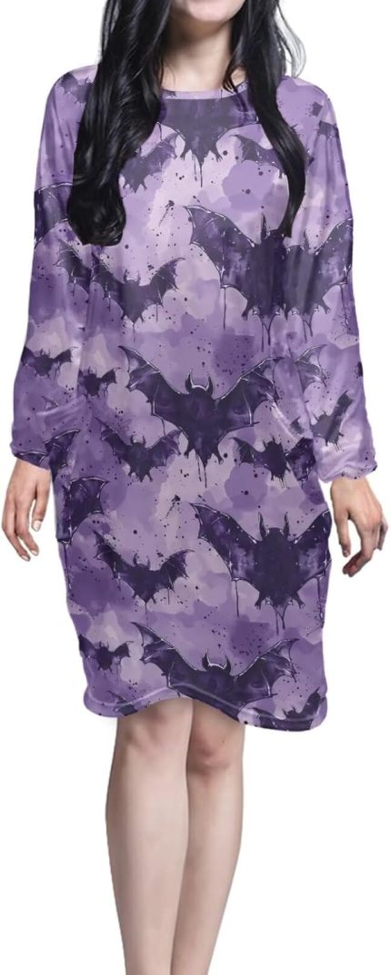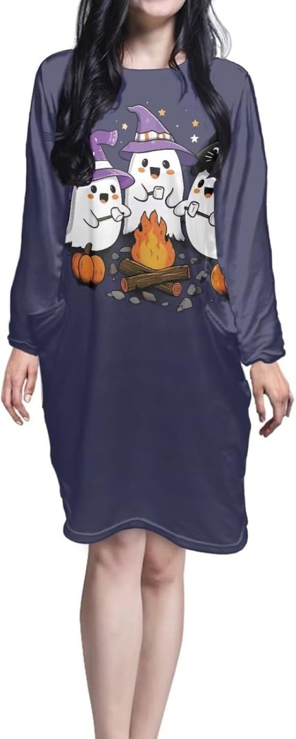Long Sleeve Nightgowns for Women Size S-5XL Crewneck Nightshirt Halloween Sleep Dress