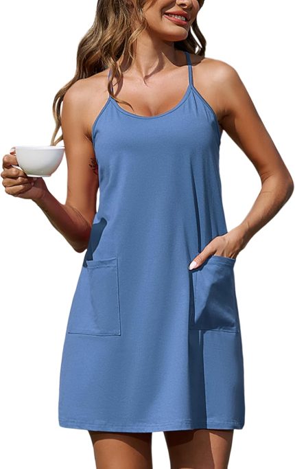 Marvmys Women’s Sleeveless Short Nightgowns Racerback Sleep Dress with Pockets Scoop Neck Chemise Sleepwear