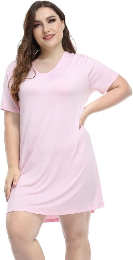 MissNina Women’s Plus Size Nightgowns Soft Plus Size Sleep Shirt Night Shirt Sleep Dress V Neck Modal Sleepwear