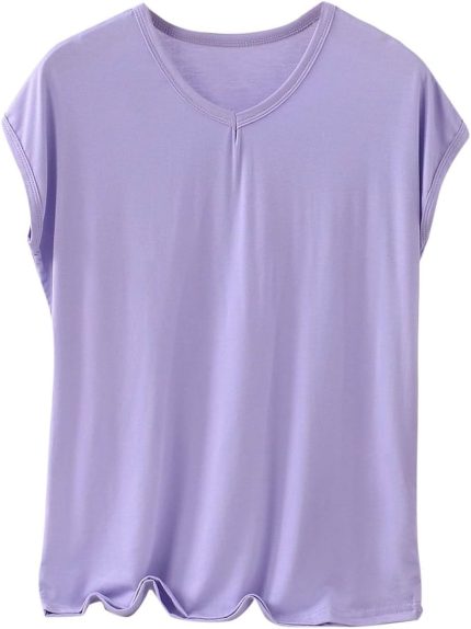 Modal Sleep Shirts for Women, V-Neck Pajama Tops Short Sleeve Soft Comfortable Tops