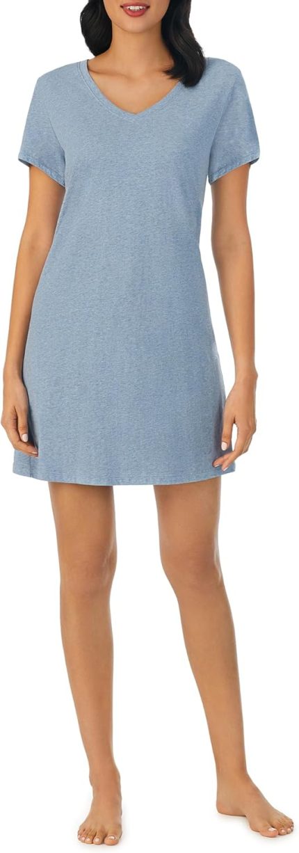 Nautica Womens Sleep Shirt Dress – Cotton Knit Jersey V-Neck Pajama Top – Lightweight & Breathable Sleepwear Loungewear