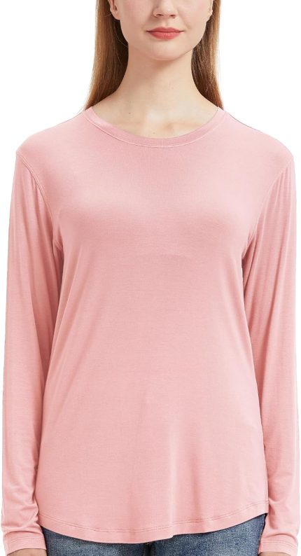 netdraw Women’s Lightweight Bamboo Viscose T-Shirt Buttery Soft Curved Hem Long Sleeve Sleep Lounge Pajama Tops