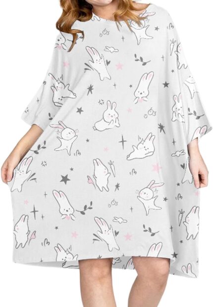 Narecte Nightgowns for Women with Pockets Plus Size Night Gowns Oversized Sleepwear Short Sleeves Sleep Shirts Fit S-5XL