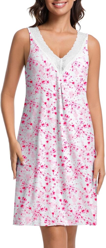 Nightgowns for Women Sleeveless Sleepwear Wide Strp Lightweight Sleep Shirt Pleated V Neck Nightshirts