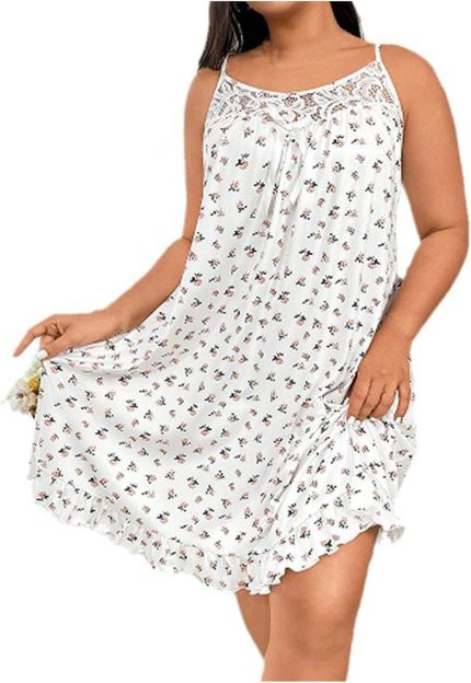 Oplxuo Plus Size Nightgown Women Sleeveless Lace Sleepwear Full Slip Sleep Dress Floral Print Night Shirt Chemise Nighties