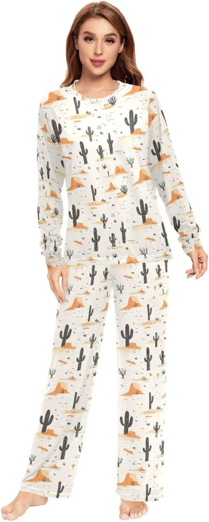 Western Cowboy Boho Cactus Women Pajama Sets 2 Piece Cozy Men Sleep Pants Nightgowns for Bridesmaid Pjs Set
