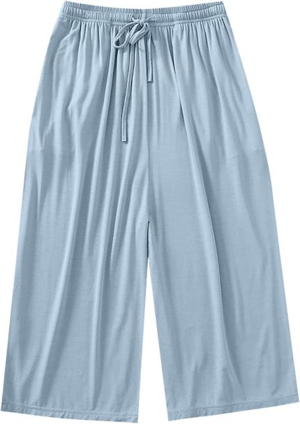 Women Capri Pajama Pants Loose Soft Comfort Lounge Long Shorts Elastic Waist Sleep Bottoms Sleepwear Capris