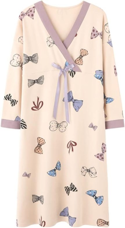 Women Cotton Long Sleeve Nightgowns Soft Button Down Sleep Shirts Full Length Night Shirts Sleepwear with Pockets