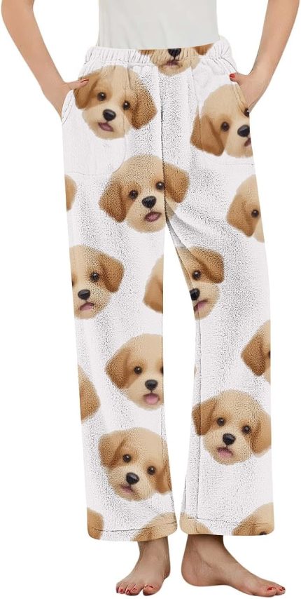 Women Fleece Pajama Pant Fluffy Sleep Bottoms Plush Lounge Sleep Pants Dog Print Casual Soft Comfy Clothes