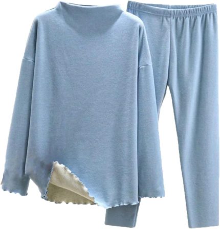 Women Fleece Lined Pajamas Set Long Sleeve Pullover Tops with Sleep Pants 2 Piece Sleepwear Thermal Loungewear