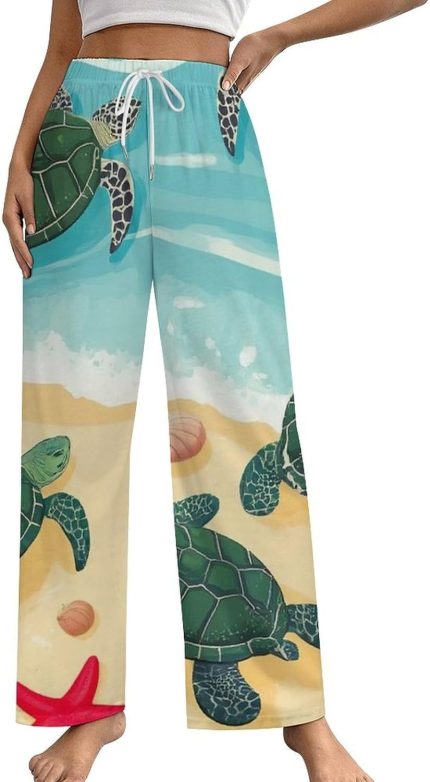 Women’s Comfy Sleep Pants, Long Loose Pants with Adjustable Strap for Home and Travel