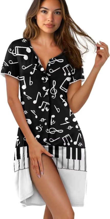Women’s Fall Nightshirt Sleepdress Sleepshirt Button Down Nightgown Sleepwear Sleep Pajama Dress