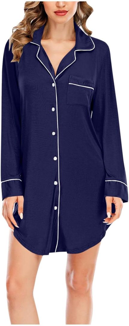 Women’s Button Down Nightwear Shirts Fashion Lapel Long Sleeve Soft Comfort Pajamas Casual Sleep Shirt
