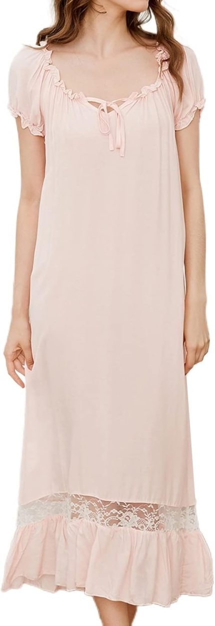 Women’s Cotton Victorian Nightgown Short Sleeve Pj Soft Pajama Dress Long Sleepwear Off Shoulder Sleep Shirt Frilly