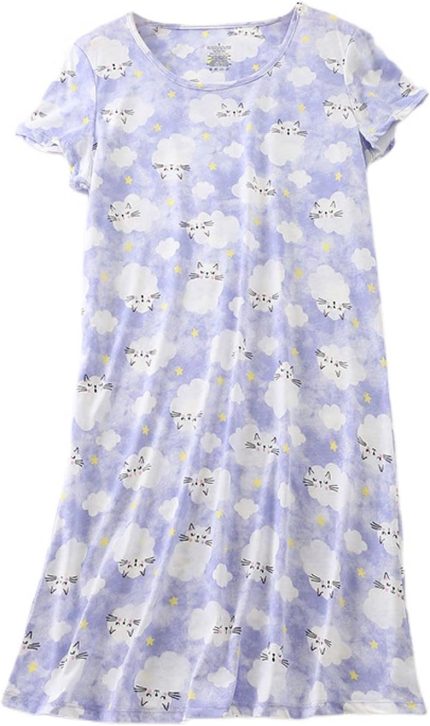 Women’s Cute Nightgown Short Sleeve Cartoon Printed Sleep Dress Soft Summer Sleepwear Nightdress