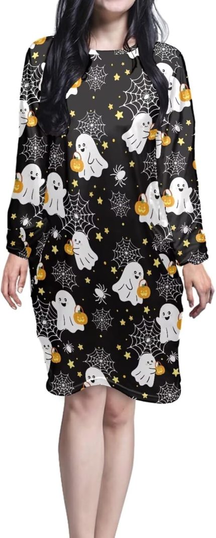 Womens Long Sleeve Nightgowns Halloween Sleep Dress Casual Night Shirt Ladies Sleepshirts, Size S-5XL