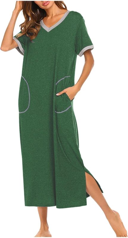 Womens Long Nightgown Comfy Nightshirt Short Sleeve Loungewear Casual Sleep Dress Plus Size Sleepwear with Pocket