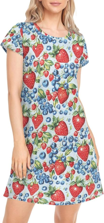 Womens Nightgown Sleep Shirt for Women Sleepwear Short Sleeve Dress S-XXL