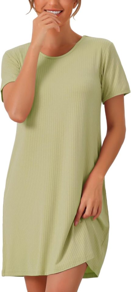 Womens Nightgowns Modal Sleepwear Short Sleeve Sleep Shirt Crewneck Short Nightshirt