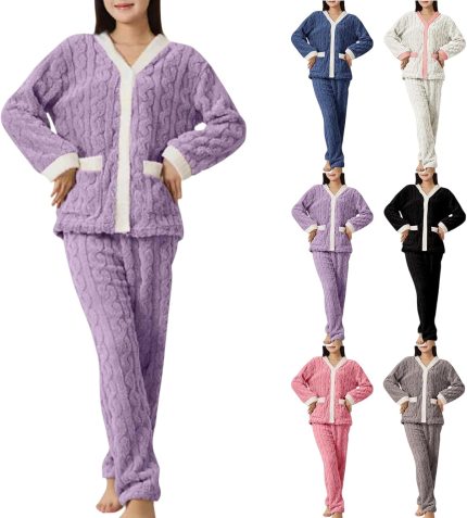Womens Pajama Sets Fleece Pajamas Fluffy Comfortable Pullover Tops Sleep Pants Lounging Warm Sleepwear