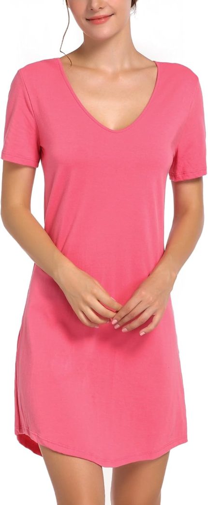 Cotton Sleep Shirts for Women Soft Sleepwear Loose Fit Night Shirts V-neck Nightwear