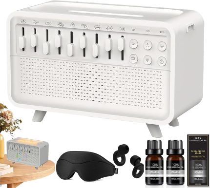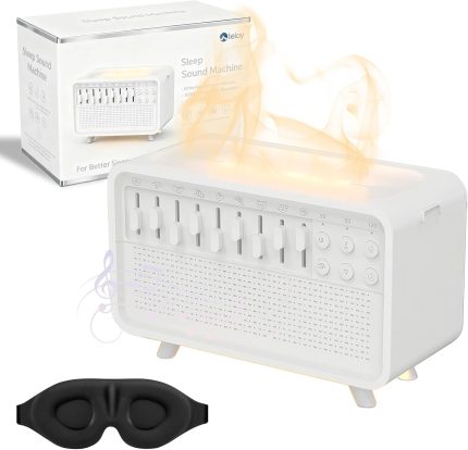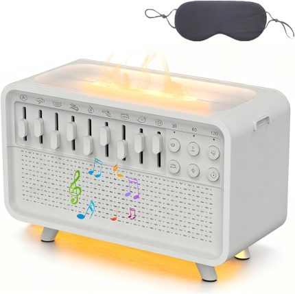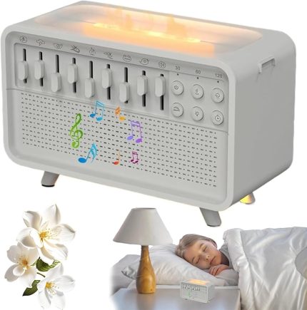 Humifall Noise Humidifier, Led Sleep Sound Box with Scented Mist & Simulation Flame, 3 In 1 White Noise Machine, Adjustable Mist, with Timer, for Home, Office, Work,Yoga (White, All)