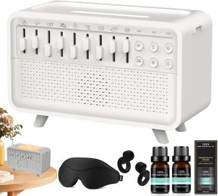 Humifall Noise Humidifier, Sleep Sound Machines with 8 Group Nature Sounds, White Noise Sound Machine with Essential Oils & Timer, Flame Diffusers for Sleep & Relaxation (White*1, Clove)