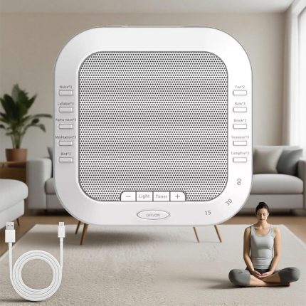 Ora Sound Machine Solfeggio Frequencies, White Noise – 28 Soothing Sounds, Night Lights & 3 Timer Settings, for Yoga Sleep Sound Machine (White)