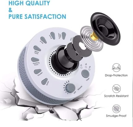 Portable White Noise Sound Machine with 18 Sleep Sounds, Battery Powered Bluetooth Function Knob Volume Control Sleep Timer, Travel White Noise Machine for Sleeping Adults Baby(White)