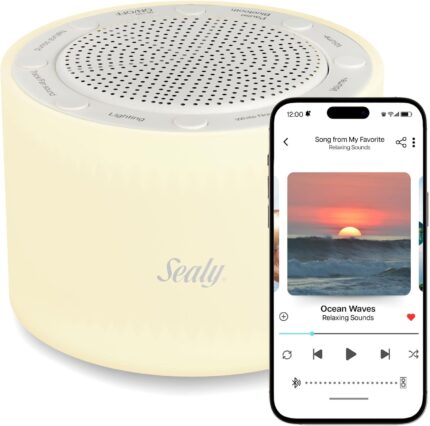 Sealy Wireless Sleep Sound Machine & Night Light – 14 Sound Modes (White Noise, Nature, Fan), Bluetooth Speaker, 2 Brightness Levels, 2 Timer Settings, Rechargeable Battery, 3H Playtime