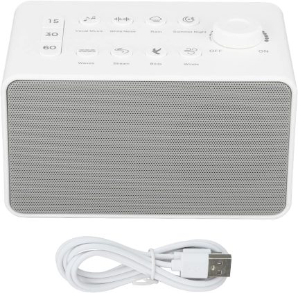 Sharp Sound Machine Alarm Clock with Bluetooth Speaker, 6 High Fidelity Sleep Soundtracks – Soothing Noise Machine for Baby, Adults, Home and Office – White LED