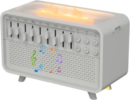 White Noise Night Light Humidifier,Sleep Box,White Noise Sound Machine,Bluetooth Wireless Speaker,Flame Diffusers with Aromatherapy,Portable Calming Music Player