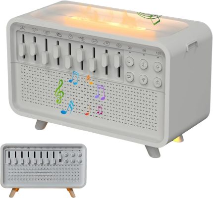 White Noise Night Light Humidifier,Bulora Sound Box with 8 Ambient Sounds,White Noise Night Light Humidifier with Sound Machine,Flame Diffusers with Aromatherapy,for Sleep,Meditation,Work,Yoga