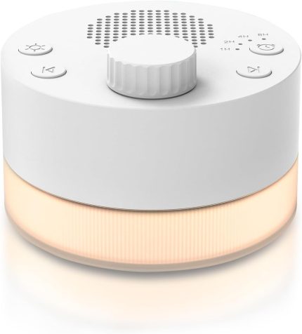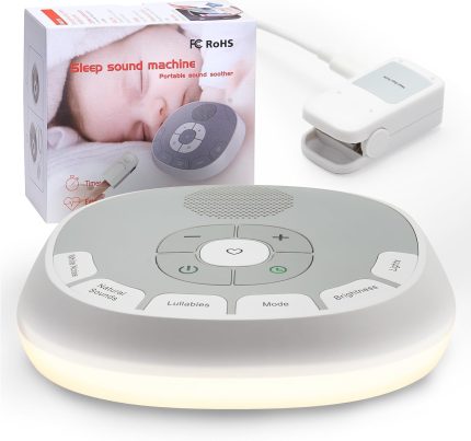White Noise Sound Machine Baby | 20 Soothing Sounds and Night Light for Sleep and Relaxation | Heartbeat Sensor Mimics Mom’s Heartbeat for Newborns | Adjustable Volume and Auto-Off Timer (White)