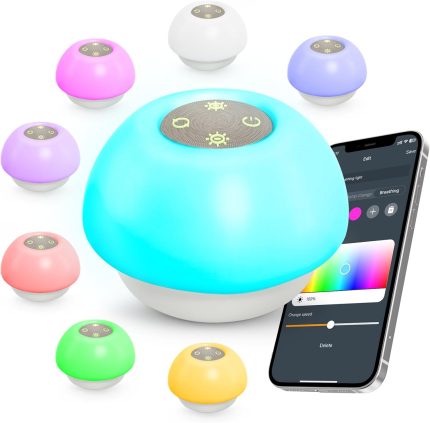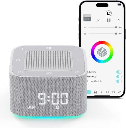 White Noise Sound Machine for Babies & Adults with 32 Soothing Sounds & 8 Calming Lights, Sleep Sound Machine with Alarm Clock, Press Buttons & App Control for Home, Office and Travel
