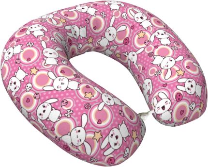 Pink Cute Rabbit Travel Pillow Memory Foam Neck Pillow, Travel Essentials Airplane Pillow, Neck Pillow for Traveling/Sleeping, Travel Accessories for Women Men