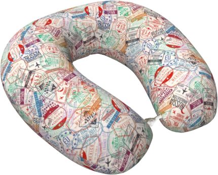 Passport Stamp Travel Pillow Memory Foam Neck Pillow, Travel Essentials Airplane Pillow, Neck Pillow for Traveling/Sleeping, Travel Accessories for Women Men