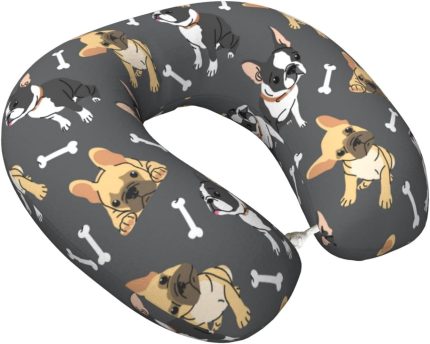 Two Color French Bulldog Travel Pillow Memory Foam Neck Pillow, Travel Essentials Airplane Pillow, Neck Pillow for Traveling/Sleeping, Travel Accessories for Women Men