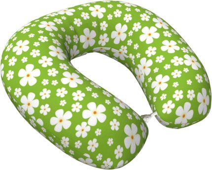 Green White Flowers Travel Pillow Memory Foam Neck Pillow, Travel Essentials Airplane Pillow, Neck Pillow for Traveling/Sleeping, Travel Accessories for Women Men
