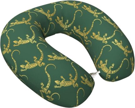 Green Cute Lizard Travel Pillow Memory Foam Neck Pillow, Travel Essentials Airplane Pillow, Neck Pillow for Traveling/Sleeping, Travel Accessories for Women Men