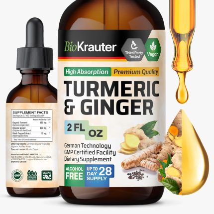 BIO KRAUTER® Turmeric and Ginger Supplement – Pure Vegan Liquid Turmeric & Ginger Tincture with Pepper 2 Fl.Oz 28 Days of Supply – Curcumin Drops for Joint Support, Antioxidant & Immune Support