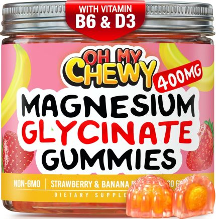 Center-Filled Magnesium Glycinate Gummies 400MG – High Absorption for Kids, Teens & Adults – Supplement for Sleep, Calm & Muscle Relaxation with B6 & D3 – Gluten Free & Vegan Friendly – 60 Count